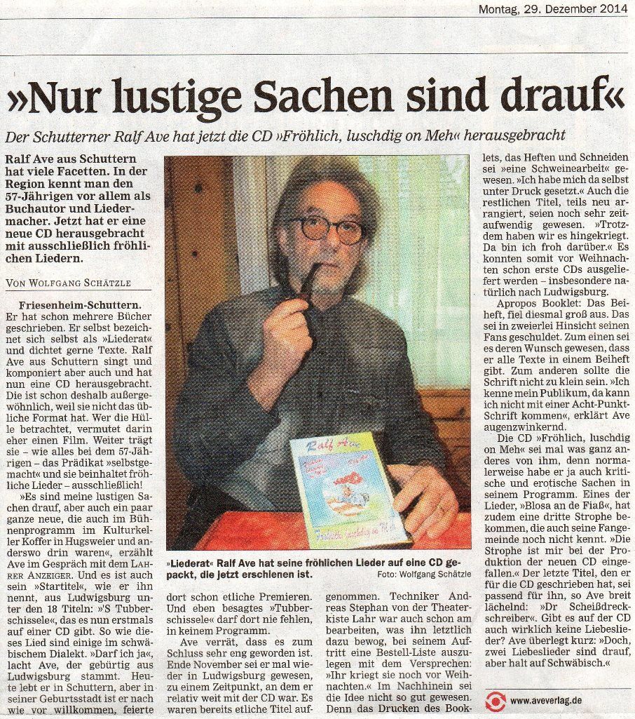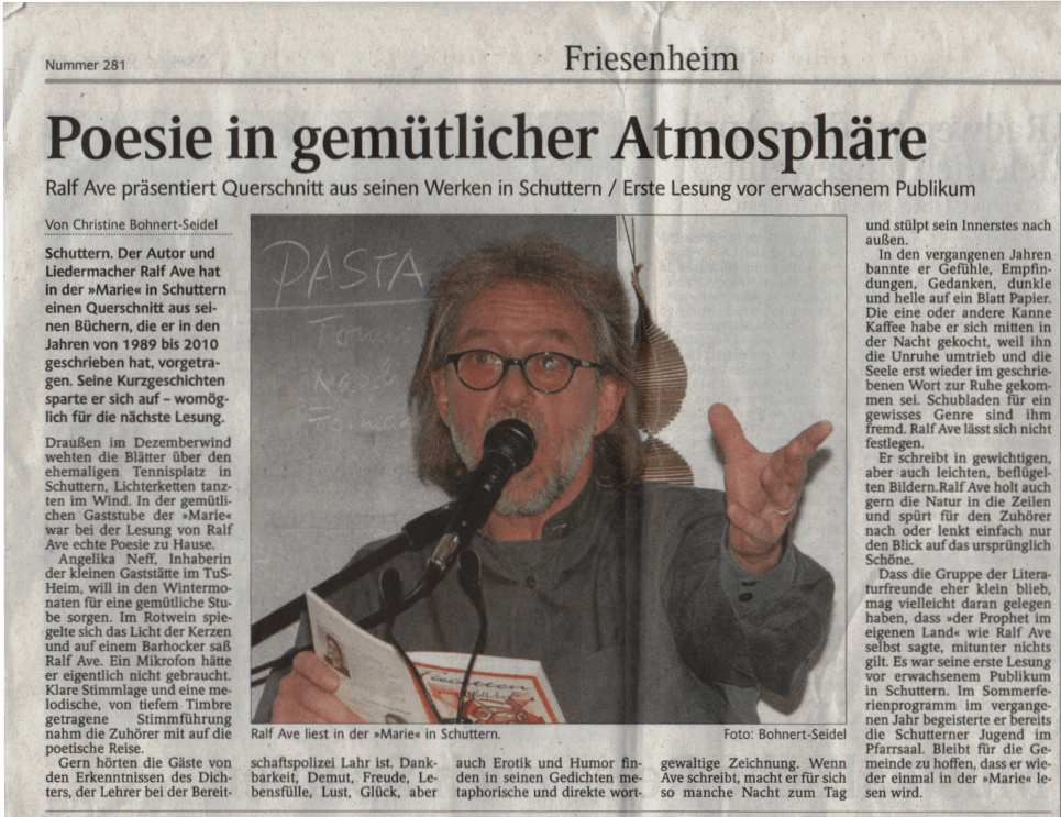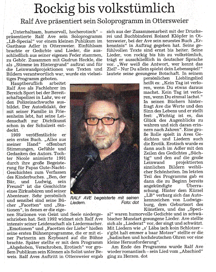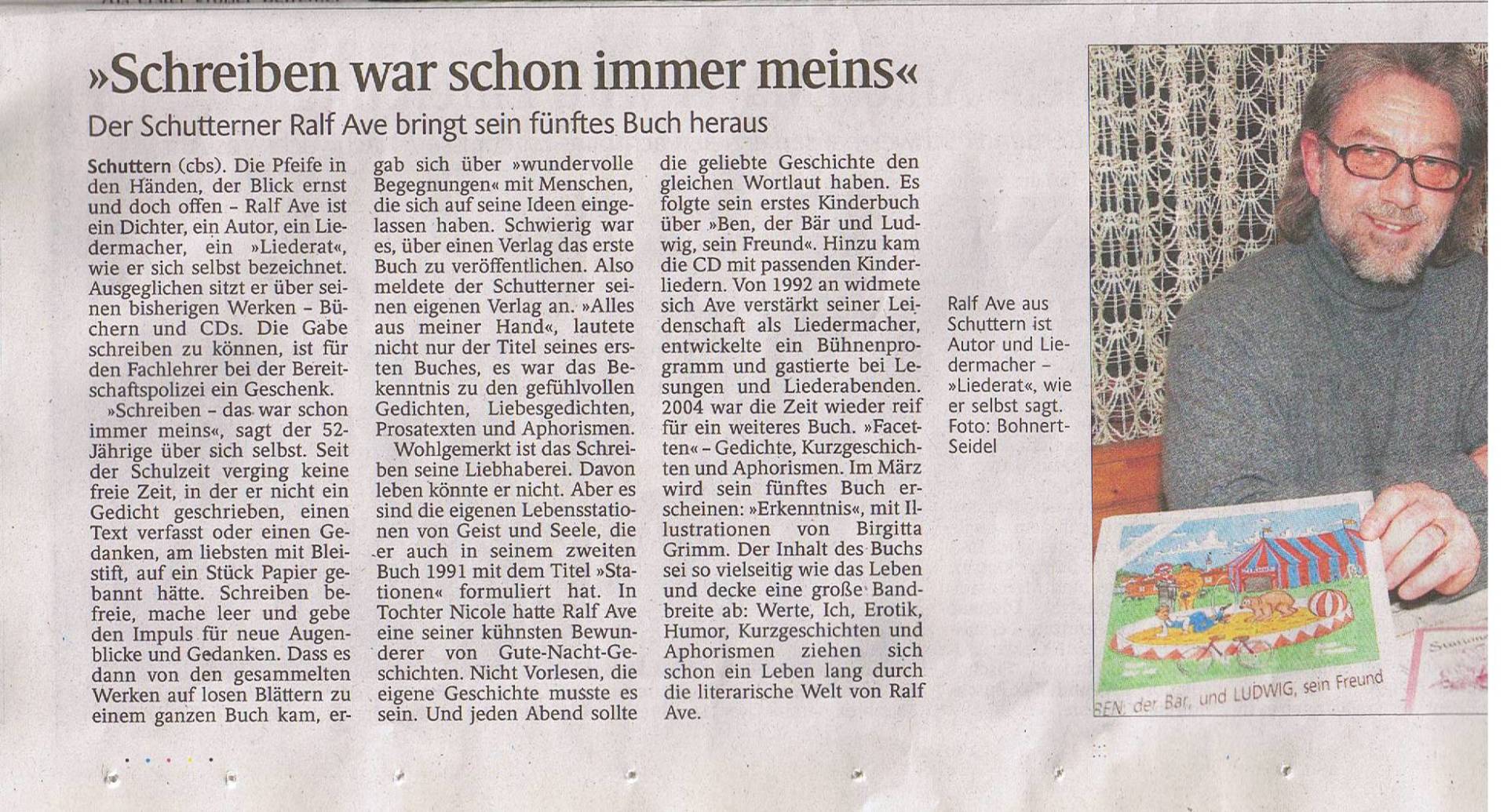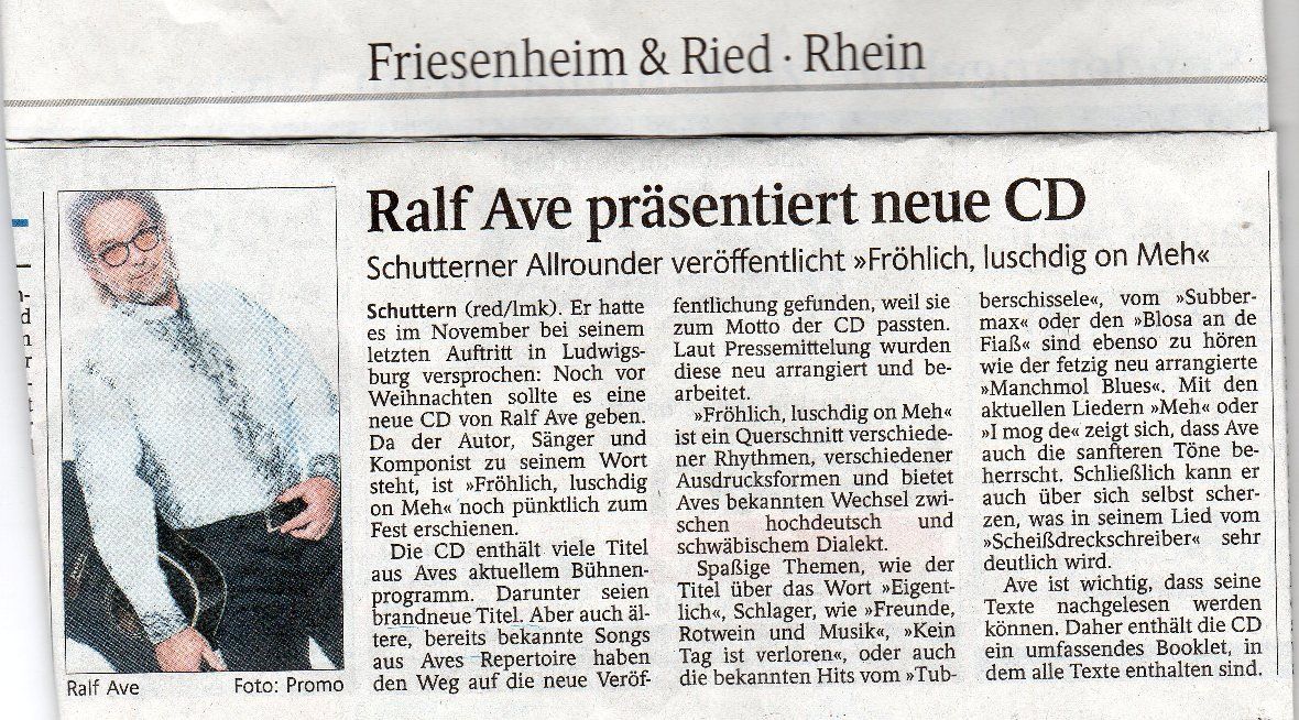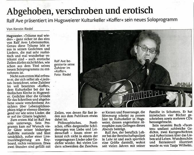 Hier können Sie in einer kleinen Auswahl lesen, was die Presse über die verschiedenen künstlerischen Aktivitäten von Ralf Ave