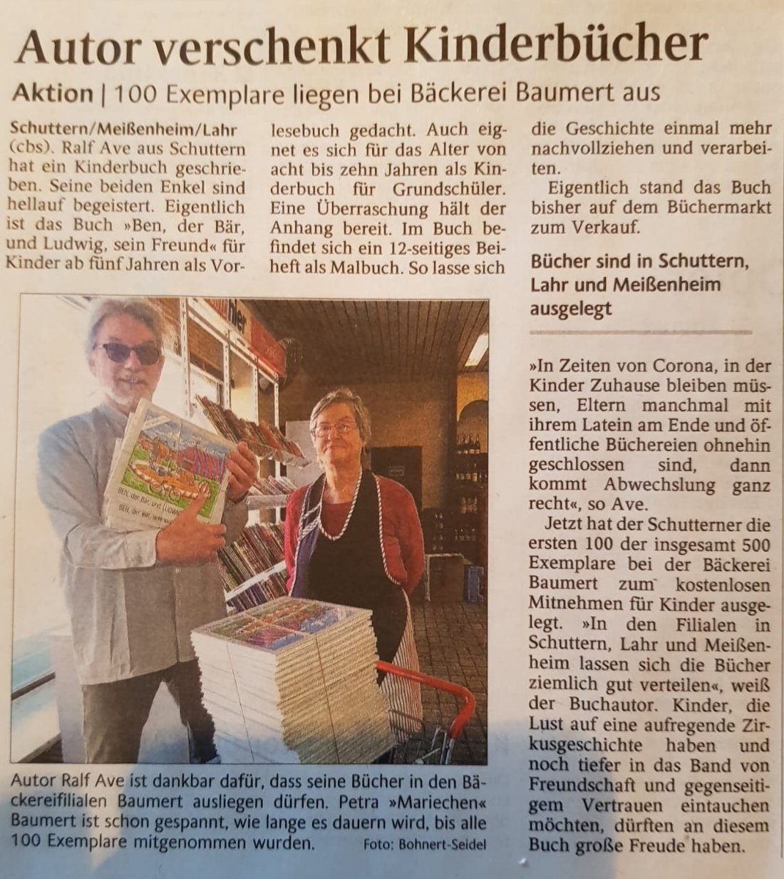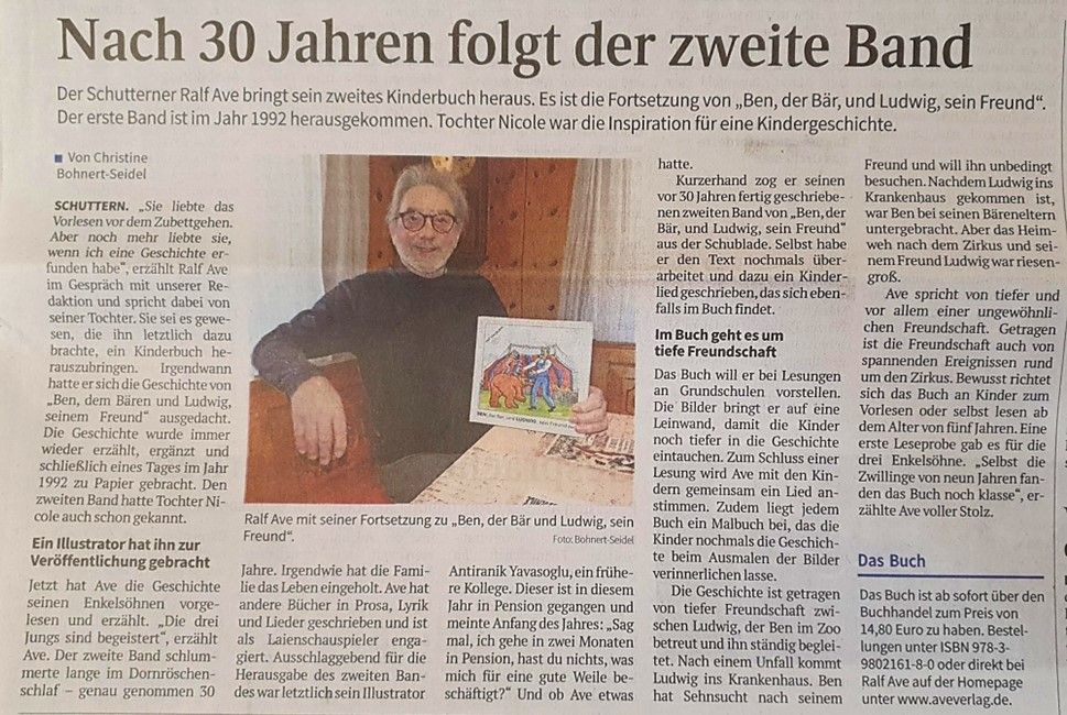 Der Artikel in der Lahrer Zeitung zum neuen Kinderbuch "Ben, der Bär, und Ludwig, sein Freund" Teil 2 von Ralf Ave (02. Dezember 2025)