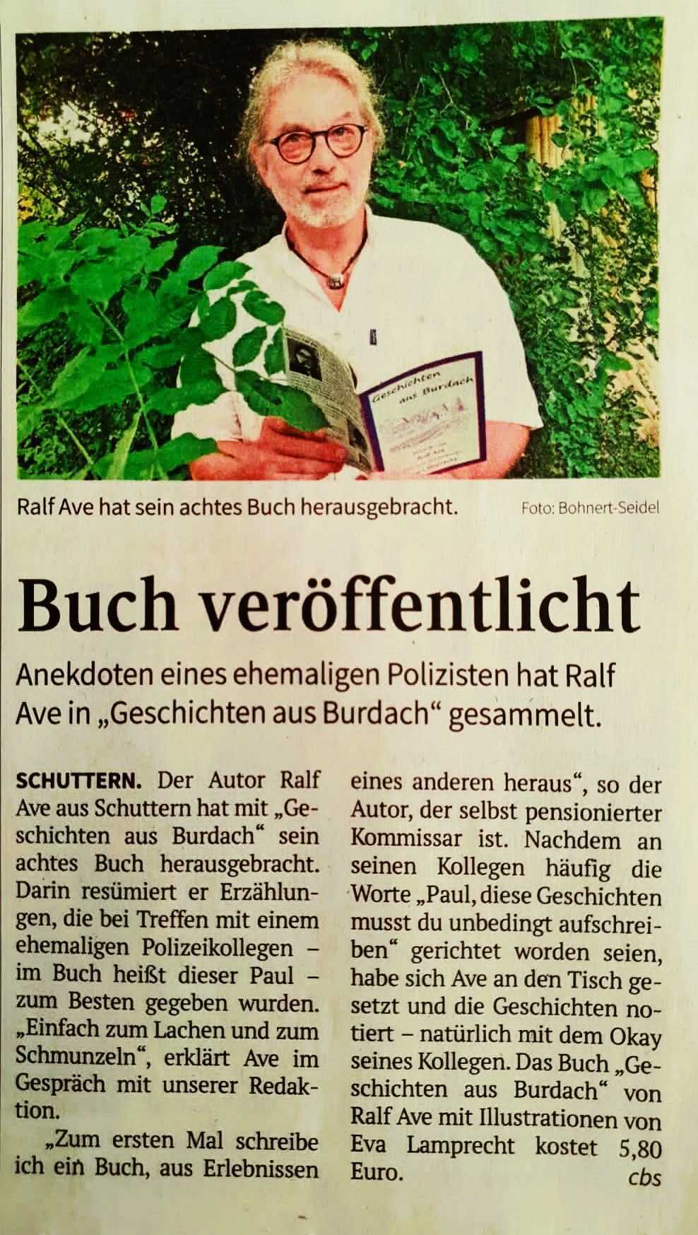 Der Artikel in der Lahrer Zeitung zum neuen Buch "Geschichten aus Burdach" von Ralf Ave (September 2023)