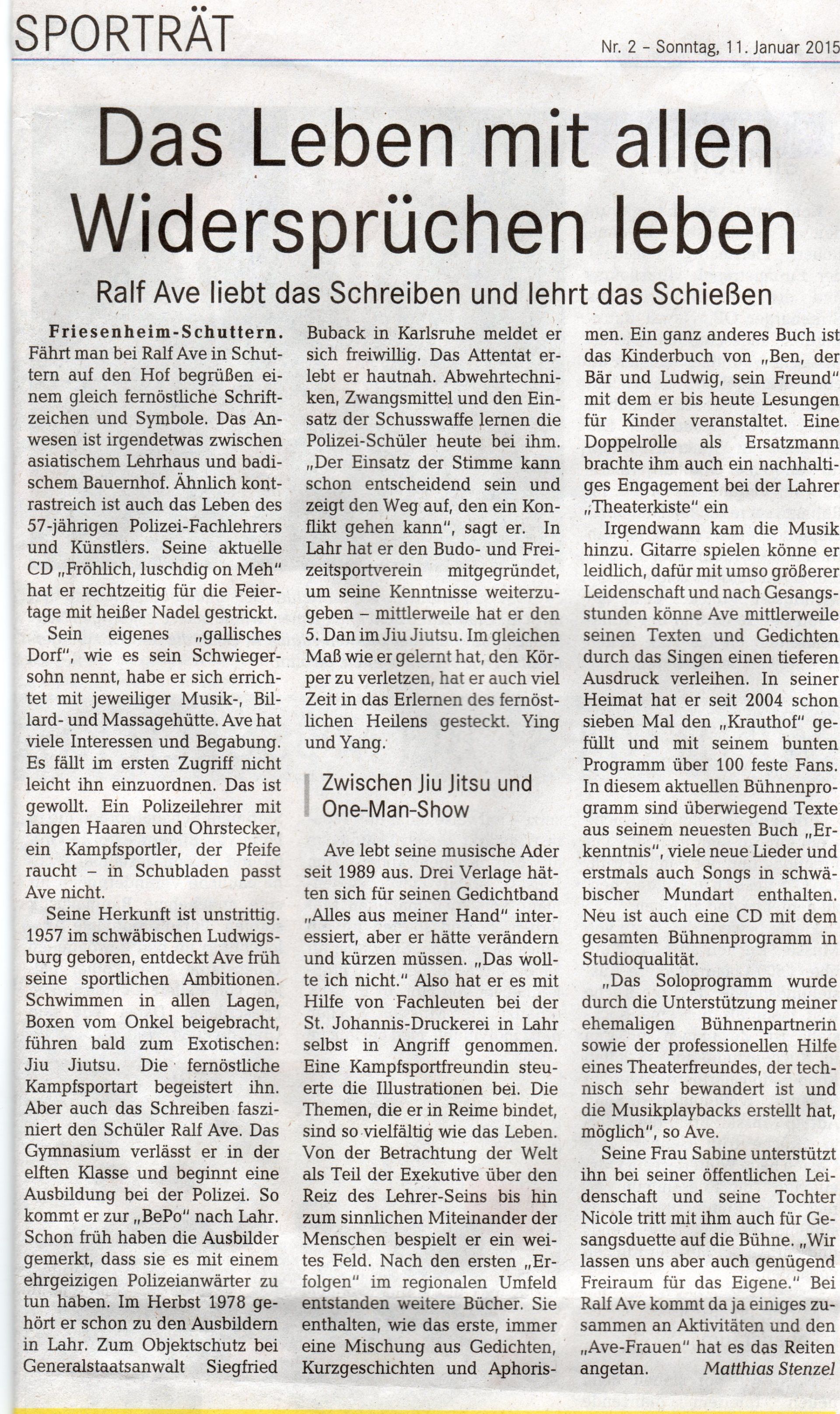Der Artikel in der Lahrer Zeitung zum neuen Buch "Augenblicke" von Ralf Ave (Dezember 2021)